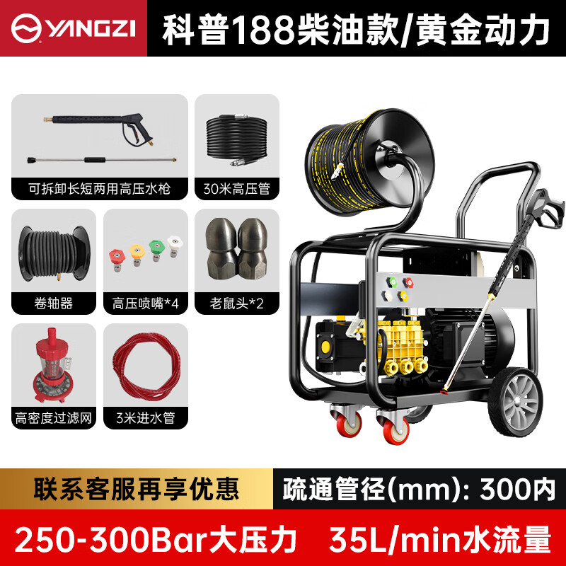 揚(yáng)子管道疏通機(jī)C系列水老鼠下水道神器大功率柴油款物業(yè)小區(qū)市政清洗機(jī)